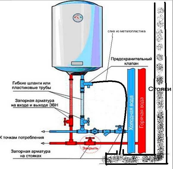Les tuyaux flexibles sont aussi une horreur, bien qu'ils soient renforcés, mais comme c'est dans le secteur privé, et qu'il n'y a pas de pression de plus de 2 atmosphères, je pense qu'ils tiendront 5 ans à coup sûr. Avec cette connexion, l'eau de la chaudière est évacuée sans problème. Les tuyaux sont connectés aux robinets. Comment vidanger le chauffe-eau dans ce cas :