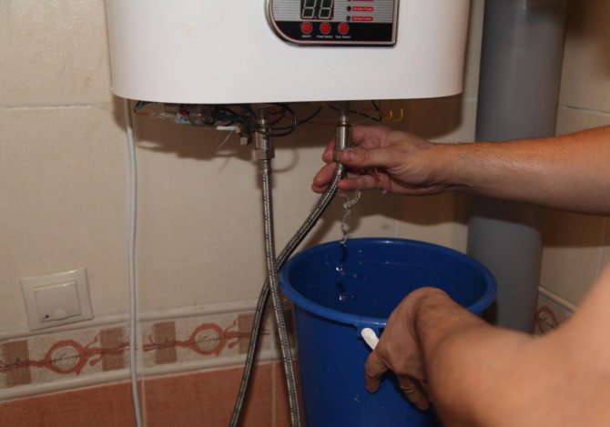 Vous vous demandez peut-être pourquoi l'eau est évacuée par l'alimentation en eau et non par le robinet d'eau chaude ? Le fait est que l'eau froide est fournie aux chauffe-eau à accumulation par le bas et va aux points de prise d'eau par le haut.Étant donné que l'eau à l'intérieur de la chaudière est sous pression, la pression doit être relâchée avant la vidange - pour cela, le robinet d'eau chaude est ouvert lorsque l'alimentation en froid est fermée.