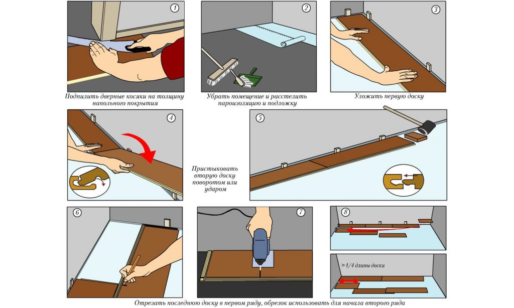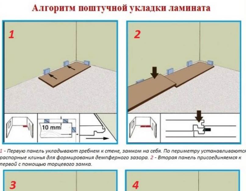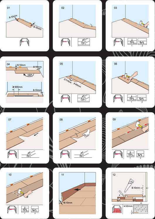 Lors de la pose de revêtements de sol stratifiés, les travaux sont effectués conformément aux instructions étape par étape: