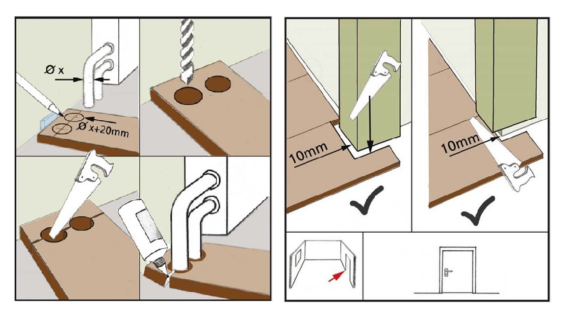 Pose de stratifié près des saillies de tuyaux et de portes