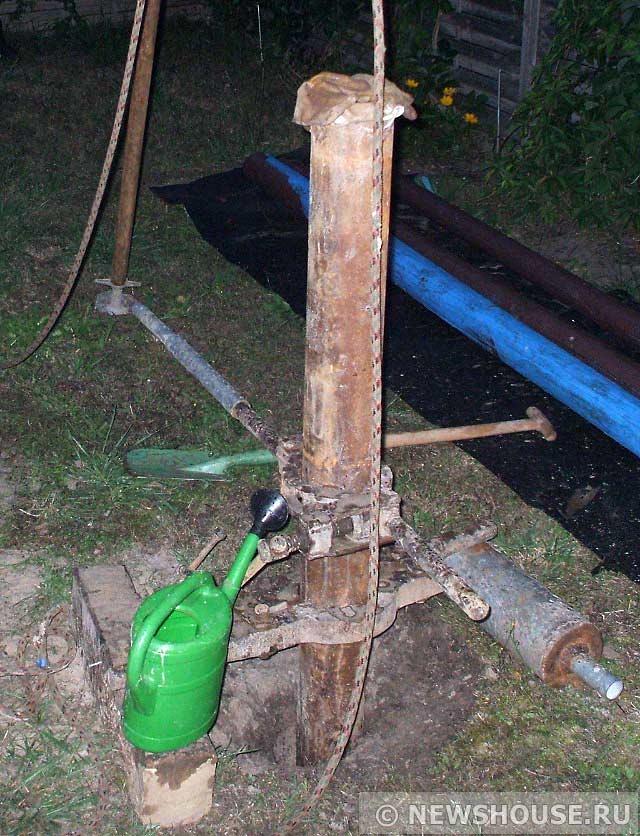 Le dispositif de prise d'eau le plus simple est le puits du puits Abyssin. Pour l'organiser, vous n'avez pas du tout besoin d'équipements ou d'appareils sophistiqués. Il suffit d'obtenir une "femme", et c'est une charge de 20 à 25 kilogrammes et de faire une borne - en fait, une pince qui recouvre solidement le tuyau bouché.