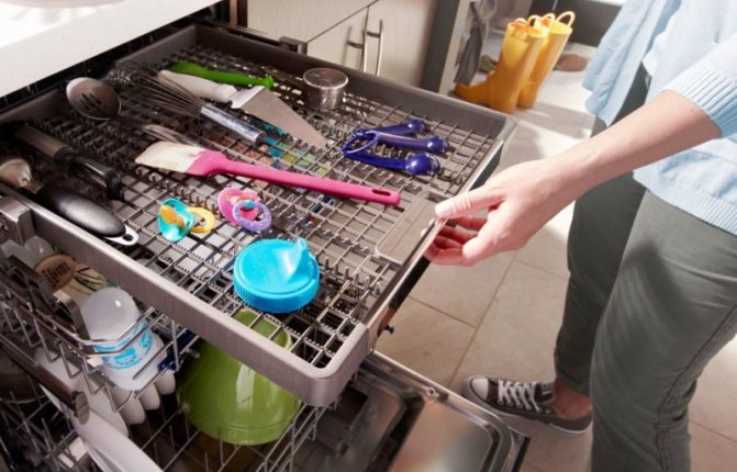 Les propriétaires du lave-vaisselle essaient de le faire fonctionner au maximum.Non seulement la vaisselle y est chargée, mais également d'autres articles ménagers qui résistent avec succès à la procédure.