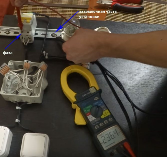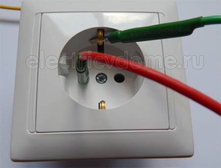 Étape 3. Il reste maintenant à vérifier la mise à la terre. Ainsi, l'extrémité d'un fil de l'appareil est connectée au contact du bus de masse, et l'extrémité restante est à son tour touchée par les contacts de la prise.