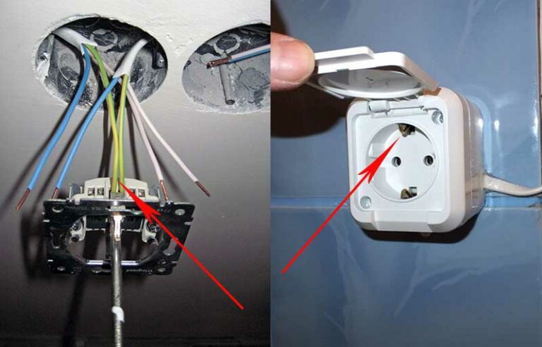 Pour ce faire, retirez le capot supérieur et faites attention au fil. Les anciennes prises ont 2 fils, elles n'ont pas de conducteur de protection, qui est connecté à la boucle de terre, composée d'un conducteur, d'une électrode de terre, d'une connexion et d'une terre autour