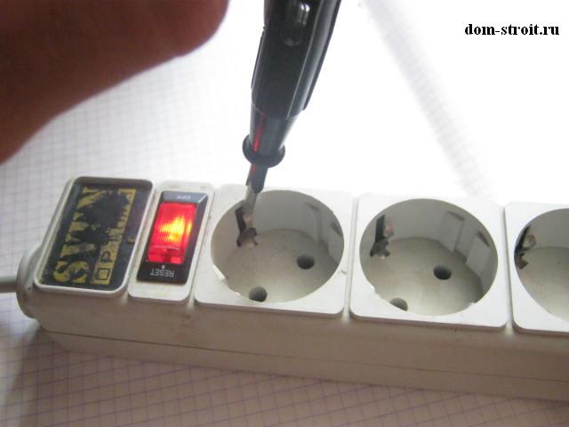 - Ensuite, avec un indicateur spécial (le soi-disant tournevis indicateur), vous devez vous assurer qu'il manque la phase sur les 3 fils, plus précisément sur leurs parties nues;