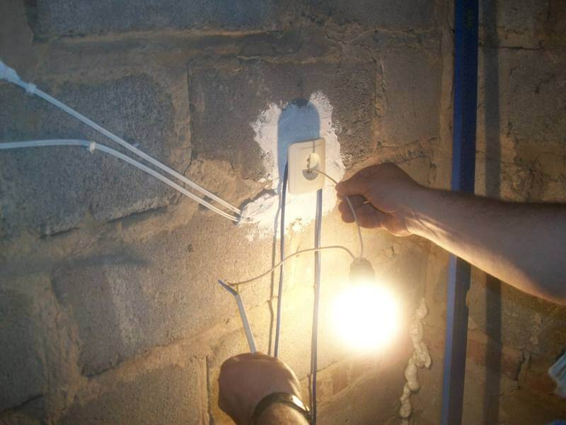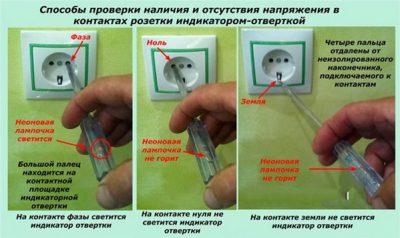 Lorsque la phase est trouvée, elle est touchée par un fil de l'ampoule, et le second est alternativement touché au zéro et à la masse. Lorsque vous touchez le fil neutre, la lumière doit s'allumer, mais s'il y a une mise à la terre, vous devez regarder son comportement - les options suivantes sont possibles :