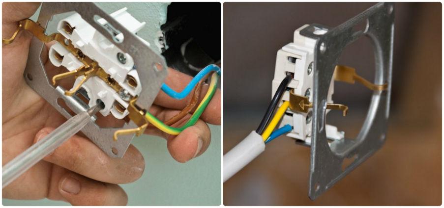 Avant l'installation, vous devez déterminer quel type de câblage se trouve dans le mur. Cette étape nécessite le démontage de l'ancienne prise, à la suite de quoi le nombre de fils sera visible. S'il n'y a que deux fils, il n'y a pas de mise à la terre et on ne voit que le fil neutre, ainsi que la phase.