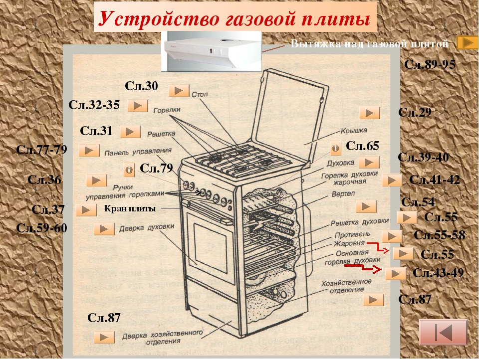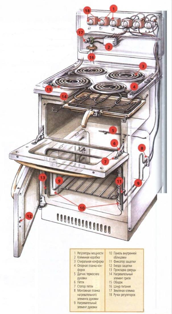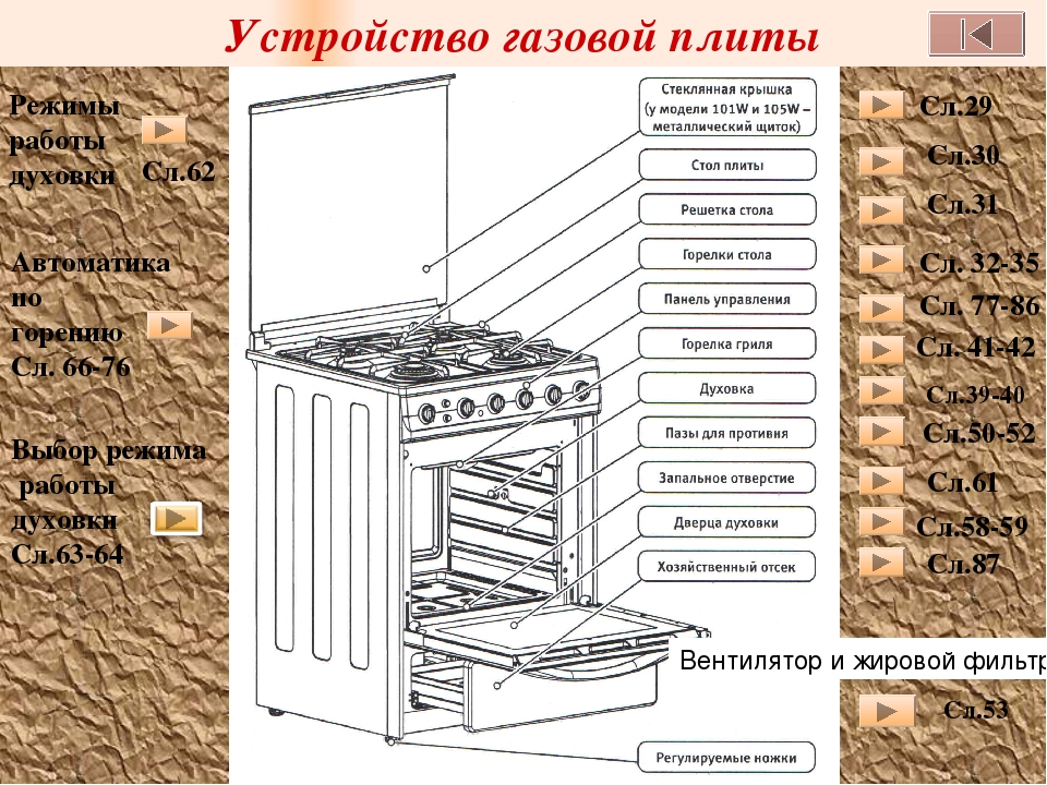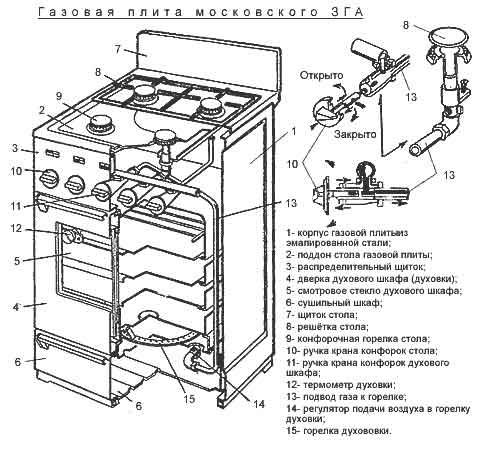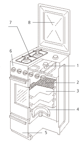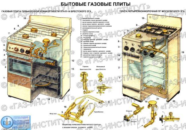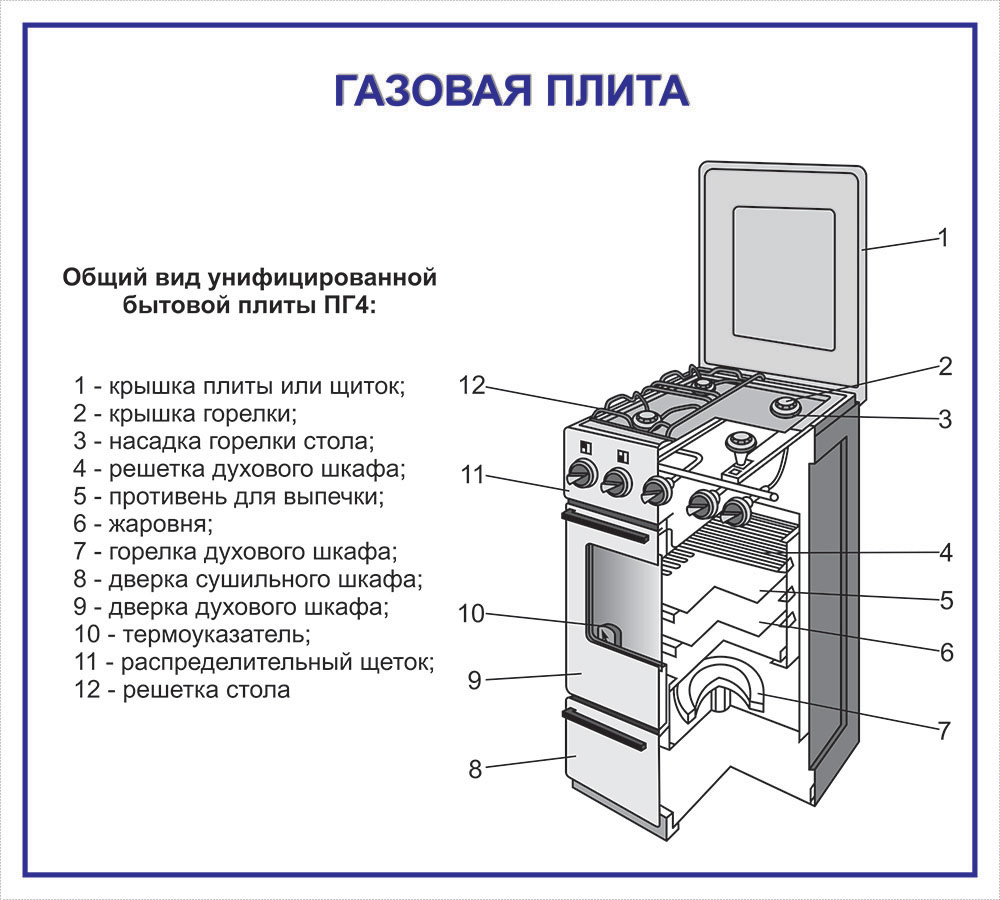 Les fabricants de cuisinières à gaz améliorent constamment leurs produits, mais le principe de fonctionnement de base reste le même. Par conséquent, la conception des cuisinières à gaz de différents modèles n'est pas très différente les unes des autres. Chaque modèle se compose de :