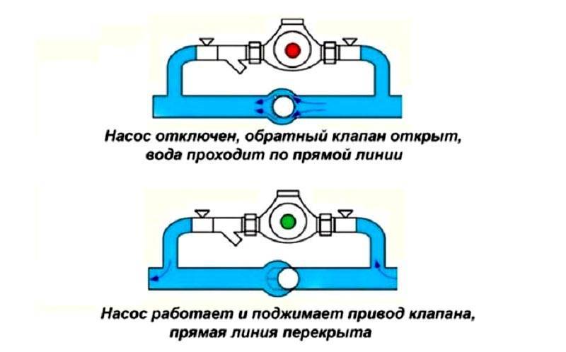 Il est possible d'utiliser un by-pass, ce qui créera une circulation naturelle du liquide de refroidissement. Pour l'installation, vous devrez acheter des tuyaux d'un diamètre inférieur.Ils sont placés autour de la pompe, écrasant le robinet dans n'importe quelle zone.