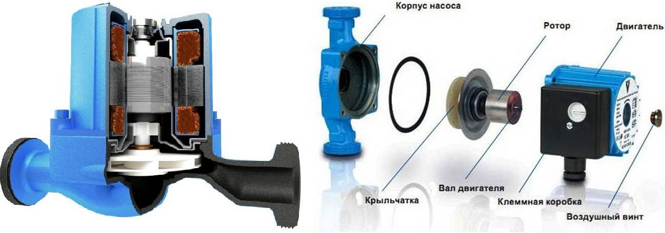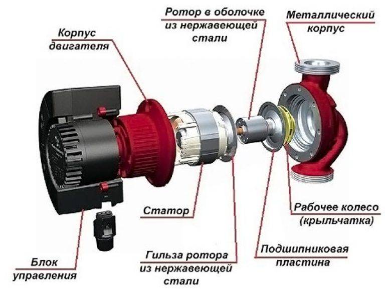 Le chauffage domestique utilise des pompes à eau à rotor noyé. Ils se caractérisent par une conception simple, un bruit minimal et un fonctionnement sans entretien. Ils se caractérisent également par de petites dimensions. La lubrification et le refroidissement en eux sont effectués à l'aide d'un liquide de refroidissement.