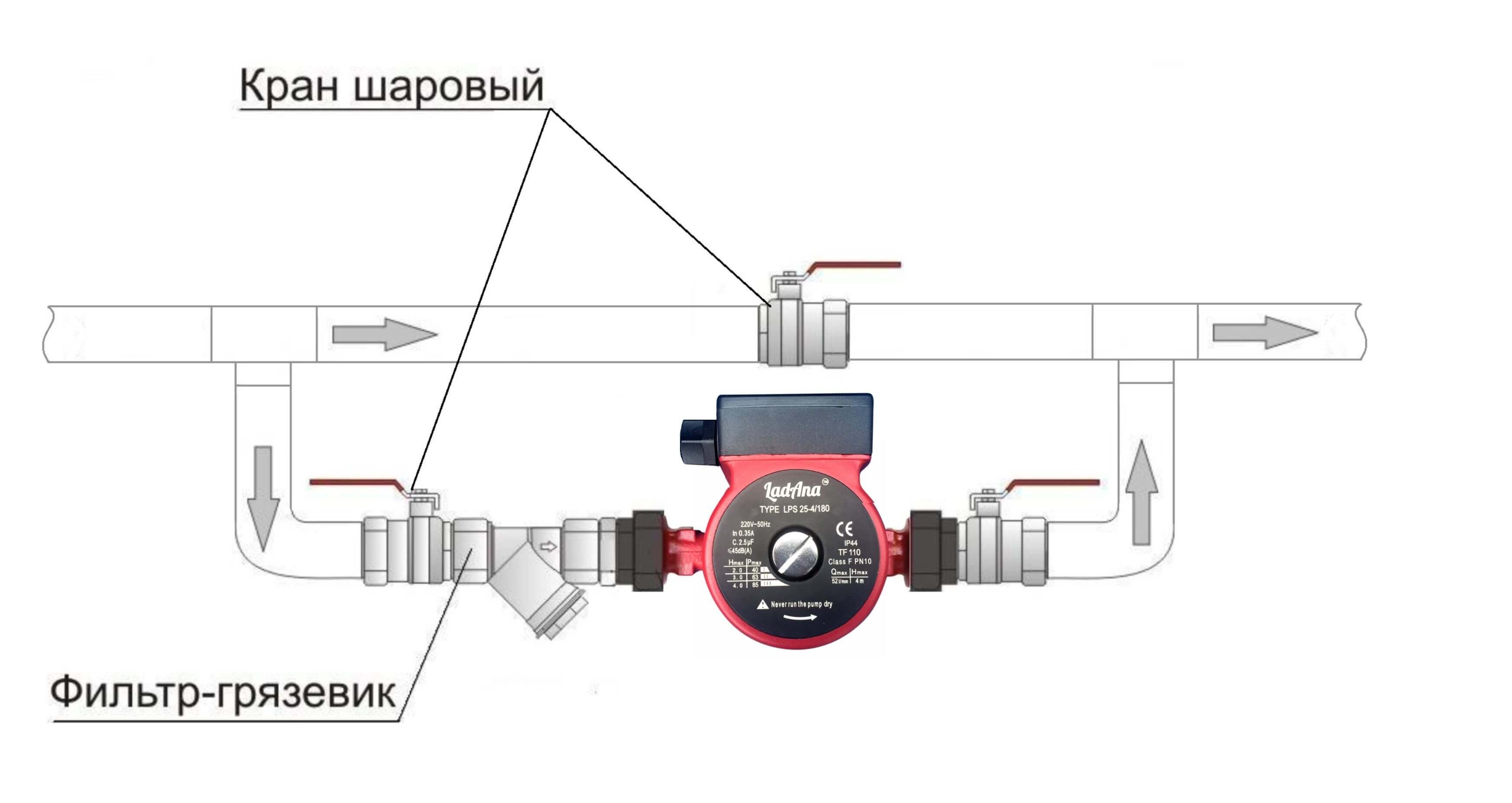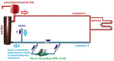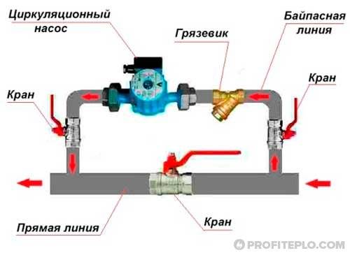 En règle générale, la pompe de circulation n'a pas besoin d'avoir des performances élevées, comme les pompes de drainage, ou la nécessité de soulever le liquide à une grande hauteur, comme, par exemple, l'équipement de fond de trou. Mais ils doivent fonctionner longtemps - pendant toute la saison de chauffage et, bien sûr, le chauffage ne doit en aucun cas tomber en panne pendant cette période. Par conséquent, cela ne vaut pas la peine d'être économisé et, pour garantir une fiabilité absolue, il est préférable d'installer une paire de pompes - la pompe principale et la pompe supplémentaire - sur la branche de dérivation de la canalisation à travers laquelle le liquide de refroidissement est pompé.