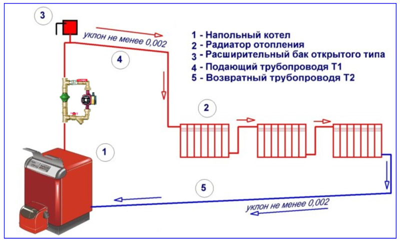 Selon la méthode de raccordement des appareils de chauffage à une chaudière à gaz sans pompe, on distingue les options suivantes: