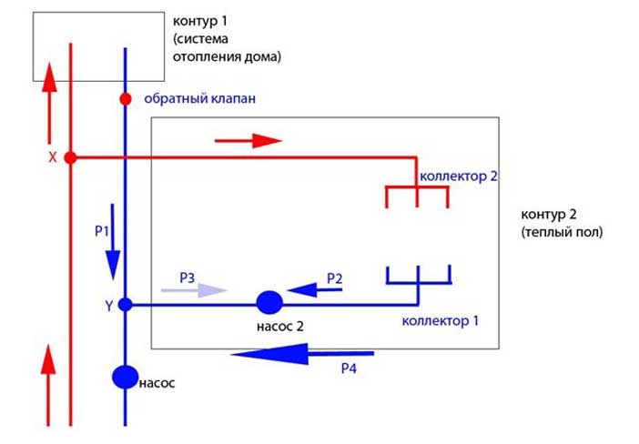 Bonjour.Ma situation est qu'une pompe 25 x 60 se trouve juste après la chaudière électrique de 6 kW, puis la ligne du tuyau de 40 mm va au bain public (il y a trois radiateurs en acier) et retourne à la chaudière ; après la pompe, la branche monte, puis 4 m, en bas, sonne la maison de 50 m². M. à travers la cuisine, puis à travers la chambre, où il se double, puis le hall, où il se triple et se jette dans le retour de la chaudière ; dans la branche du bain 40 mm vers le haut, sort du bain, entre au 2ème étage de la maison 40 m². m (il y a deux radiateurs en fonte) et retourne au bain dans la conduite de retour ; la chaleur n'est pas allée au deuxième étage; l'idée d'installer une seconde pompe dans le bain pour l'alimentation après un branchement ; la longueur totale du pipeline est de 125 m. Dans quelle mesure la solution est-elle correcte ?