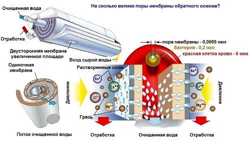Toutes ces caractéristiques chimiques intéressent peu les acheteurs, en particulier ceux qui ne connaissent pas trop la science. Il leur suffit de comprendre que le centre du système d'osmose inverse est une membrane spéciale, dont les pores sont si petits qu'ils ne laissent passer rien qui dépasse la taille d'une molécule d'eau, et c'est une partie importante de les contaminants contenus dans l'eau du robinet.