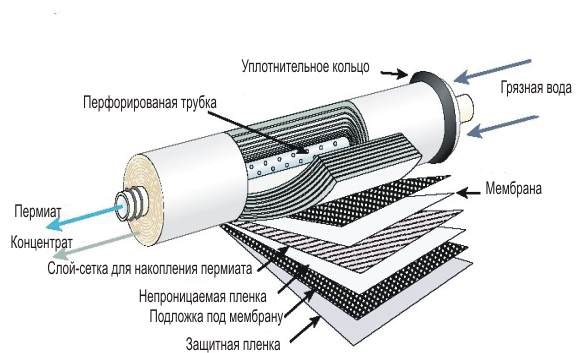 Colmatage des membranes. Les sels concentrés sont constamment en contact avec le filtre à osmose domestique.Au fil du temps, les petits pores se bouchent avec des composés de fer, de calcium, de silicium, etc. Tôt ou tard, toutes les membranes se bouchent : acétate de cellulose, composite à couches minces. La prévention la plus efficace de tels blocages est le pré-nettoyage des filtres: échangeur d'ions, charbon et autres types. Mais leur installation nécessite des coûts financiers.
