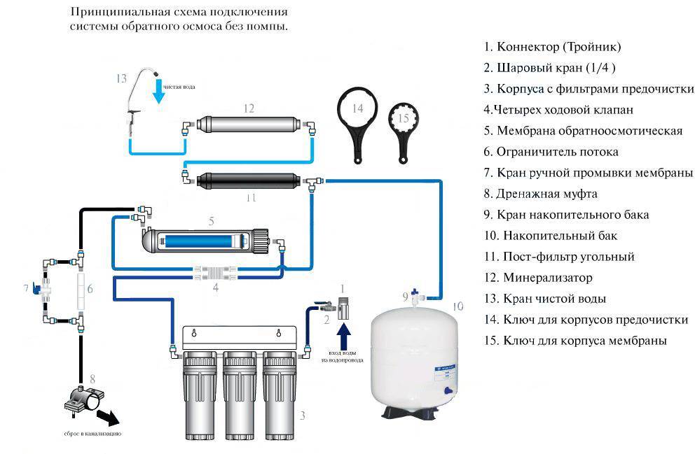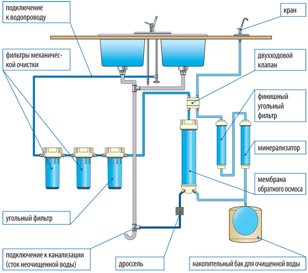 Ainsi, le système d'osmose inverse est un ensemble d'appareils qui permettent d'obtenir de l'eau potable avec un haut degré de purification. Jusqu'à récemment, de tels systèmes étaient principalement utilisés dans l'industrie, les établissements de restauration, les établissements de santé, etc.
