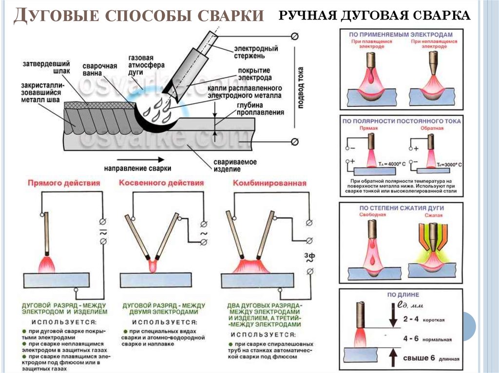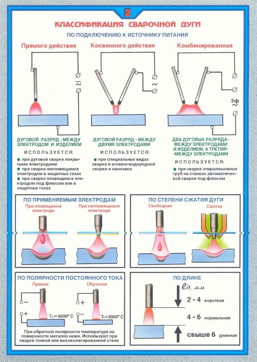 La classification du soudage électrique est faite sur la base de nombreux critères - le niveau de mécanisation du processus de soudage, le type de courant + sa polarité, l'arc, les caractéristiques de l'électrode, la méthode de protection de la zone, etc. . Regardons la distribution classique - soudage à l'arc manuel, à l'arc semi-automatique et à l'arc automatique.