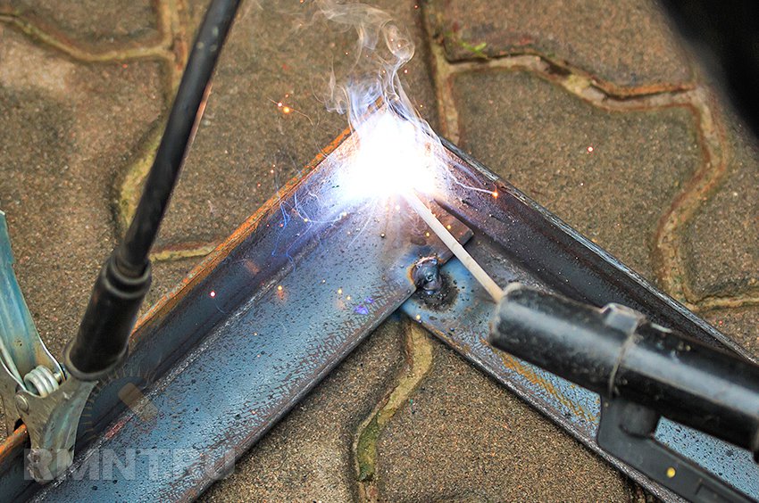 L'étape suivante consiste à allumer l'arc. Pour ce faire, l'électrode doit être amenée sur la pièce sous un angle d'environ 60 ° et passée très lentement sur la base. Il devrait y avoir des étincelles.Dès que cela se produit, touchez légèrement l'électrode à la pièce et élevez-la immédiatement à une hauteur ne dépassant pas 5 mm.