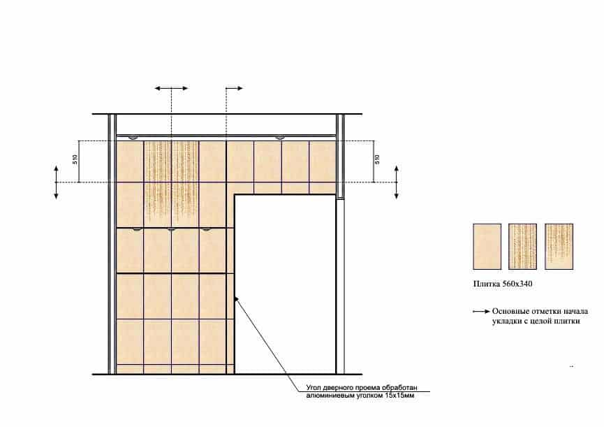 Sur la base des mesures prises et des calculs obtenus, une disposition appropriée et le nombre total de carreaux sont déterminés, après quoi, à l'aide d'un niveau laser, des marquages sont appliqués sur toutes les surfaces à faire face.