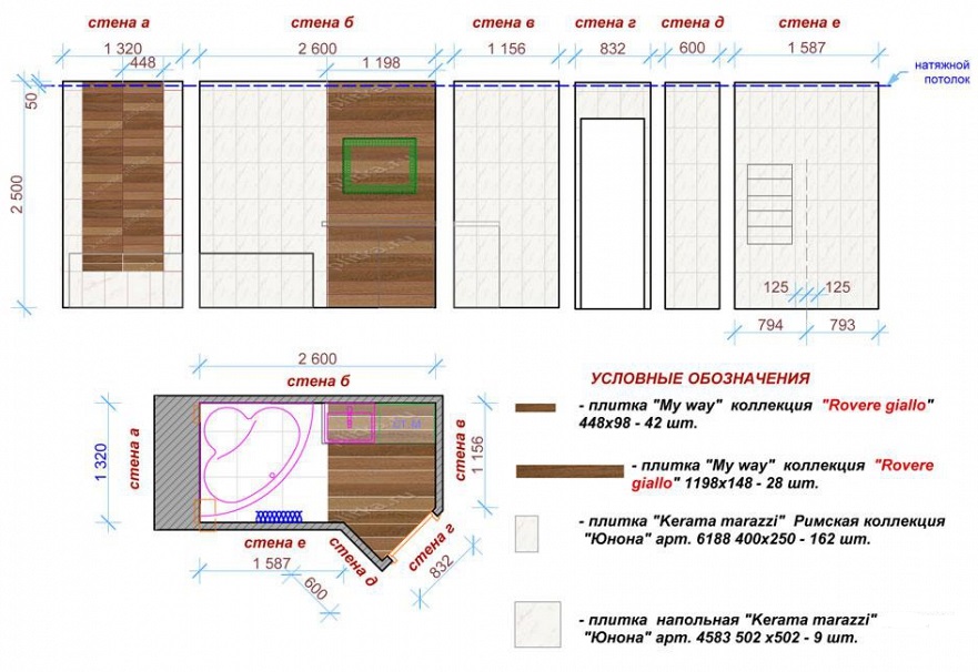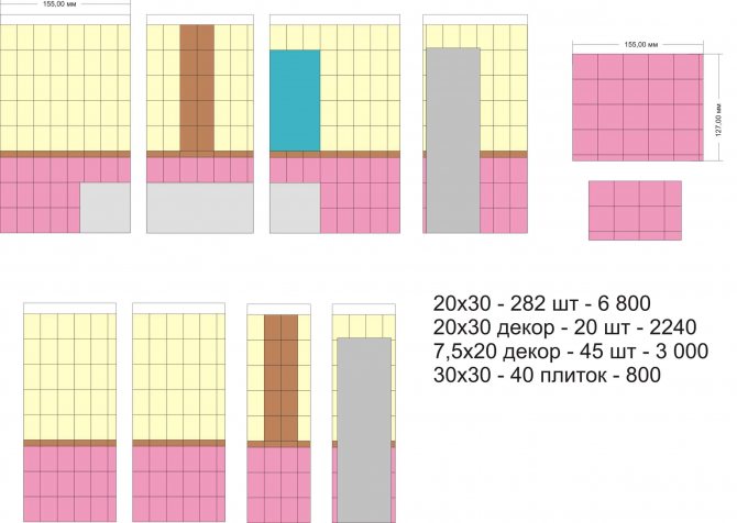 6. Ensuite, vous devez calculer les carreaux de la salle de bain pour les zones supérieure et inférieure.