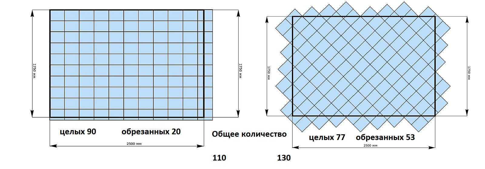 5 méthodes sont utilisées pour compter les carreaux du sol: méthodes par surface de la pièce et par nombre de rangées, comptage avec pose en diagonale et méthode pièce par pièce, calcul combiné.