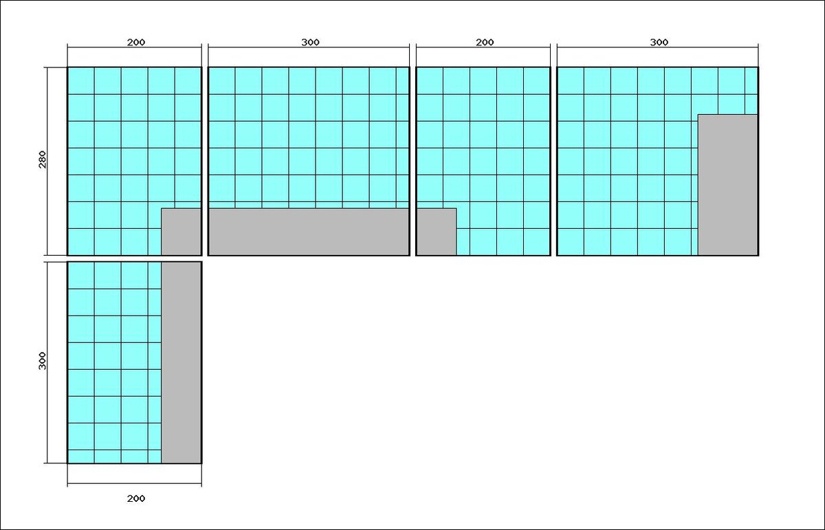Sur une esquisse avec une grille appliquée, certaines zones sont supprimées. Par exemple, pour une porte, il faut soustraire le nombre d'éléments entiers occupés par l'ouverture. Soustrayez ensuite la valeur résultante du total.