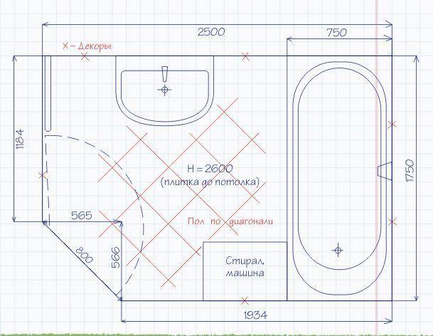 1. Comme base, je prendrai la taille de ma salle de bain carrée 1,7 m x 1,7 m.