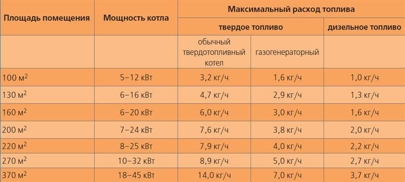 Compte tenu du rendement de 90 % d'une chaudière ordinaire, pour la production de 1 kW de puissance thermique, il faut consommer au moins 0,09 mètre cube de gaz naturel d'un pouvoir calorifique de 35 000 kJ/m3. Soit environ 0,075 mètre cube de carburant avec un pouvoir calorifique maximum de 43 000 kJ/m3.