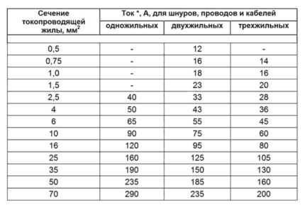 Le choix d'une section de fil appropriée lors de l'installation du câblage électrique est mieux fait avec une marge. Si tel est le cas, tous les nouveaux appareils apparus dans l'appartement peuvent être allumés en toute sécurité sans crainte de surcharge.