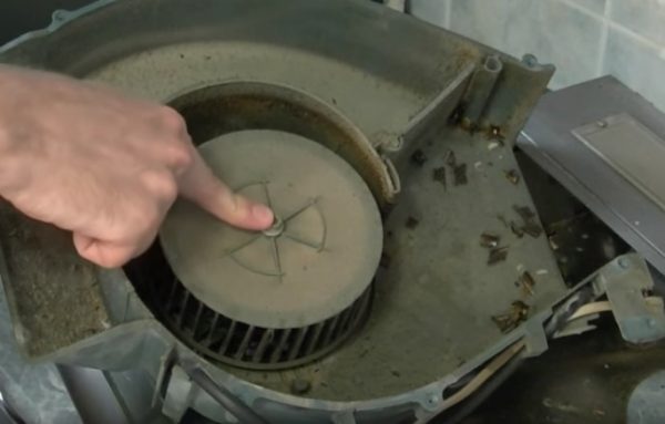 - Retirer le ventilateur : dévisser la roue du bouchon et la dégager du moteur. Parfois, il y a un clip à ressort ou une autre fixation dans la conception.
