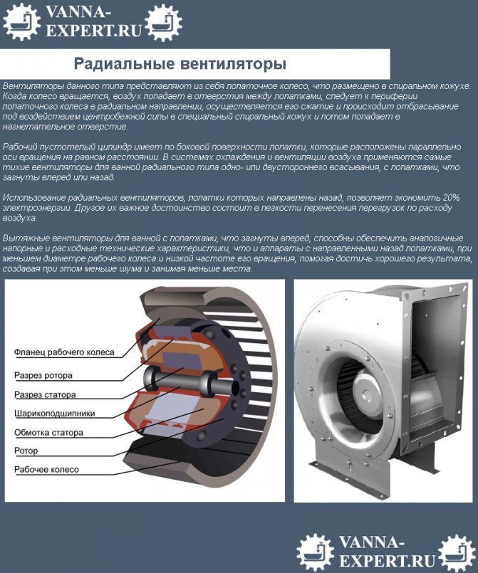 - Radiale (centrifuge). Il a reçu un tel nom en raison du travail de principe, lorsque les masses d'air se précipitent vers l'extérieur en raison de la force centrifuge.