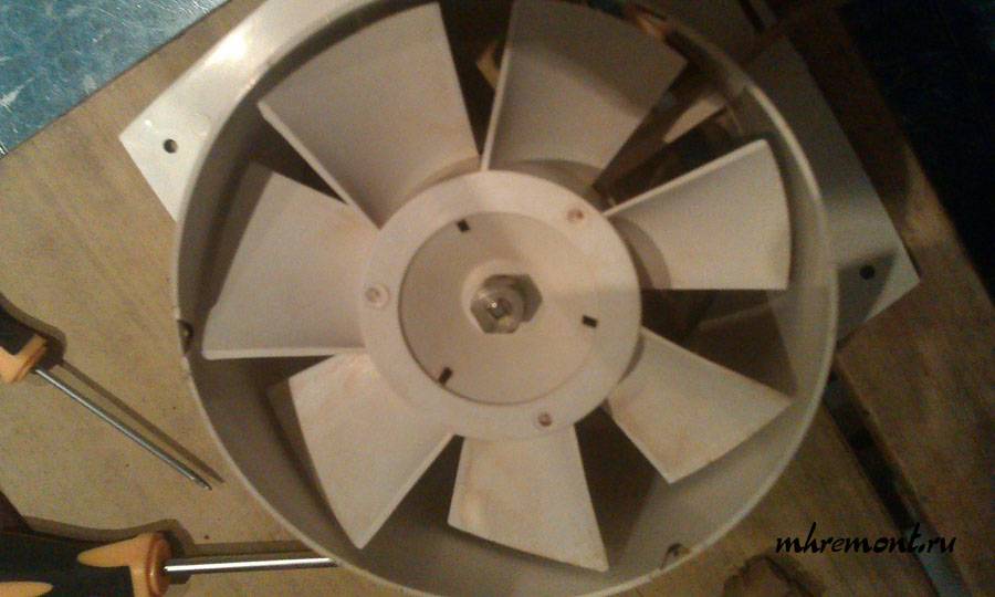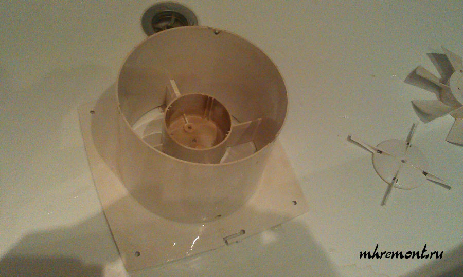 La méthode est moins pratique, car elle nécessitera d'abord un ensemble de travaux supplémentaires. Il est préférable de démonter le moteur lui-même et de ne pas toucher les autres pièces du boîtier de ventilation.