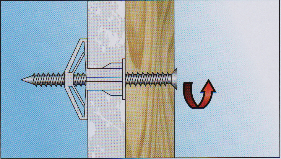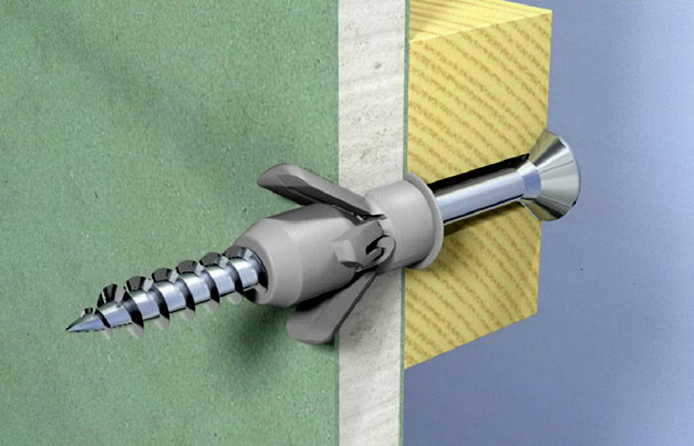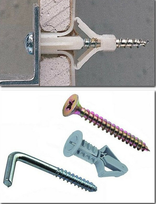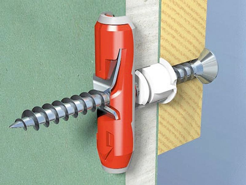 Le vissage de la cheville n'est pas difficile. Si vous devez utiliser d'autres types de structures, vous devez comprendre qu'elles ont besoin d'espace supplémentaire. Cela est dû au fait que lorsque le papillon est ouvert, les systèmes de support bougent. Par conséquent, si une plaque de cloison sèche est fermement fixée au mur principal, il est techniquement irréaliste d'utiliser de telles fixations. La solution à ce problème est les clous à cheville habituels et la bonne taille de la vis autotaraudeuse.