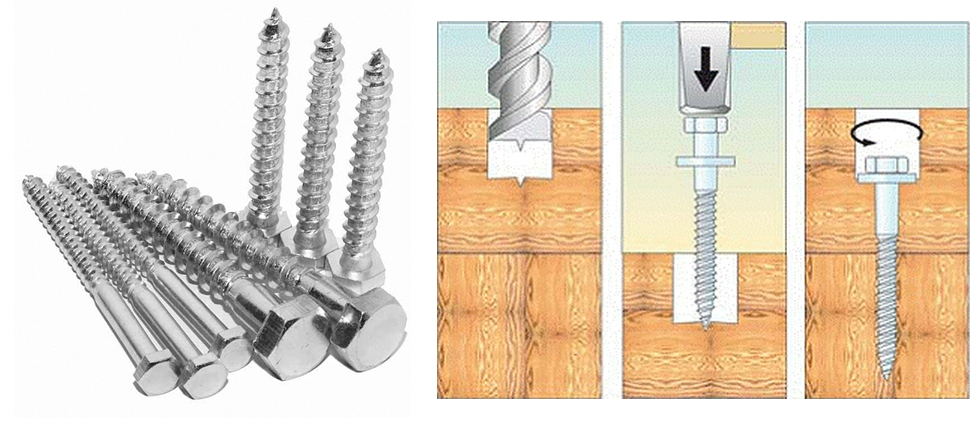 le plus souvent utilisé pour fixer des pièces métalliques au bois (par exemple, des coins pour étagères) lorsque les caractéristiques de conception le permettent.