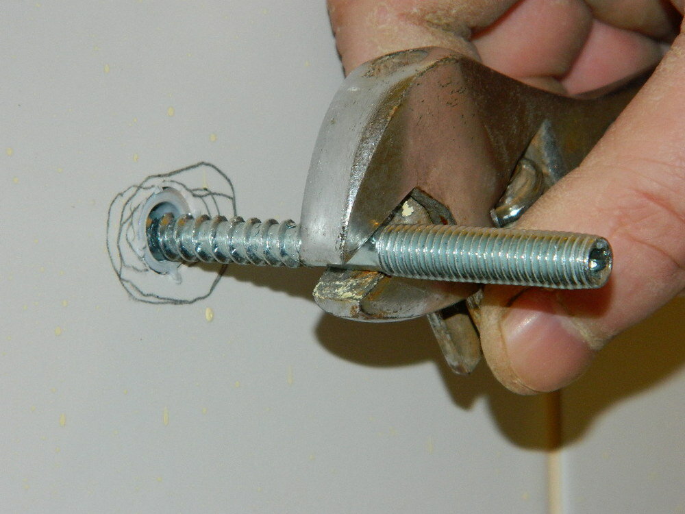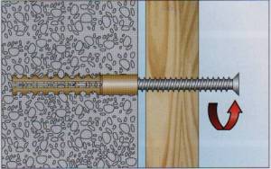Une autre méthode "à l'ancienne" consistera à percer un trou, à y visser un bouchon ou un chopik, préalablement trempé dans de la colle PVA. Ensuite, «l'excès» qui dépasse du mur est coupé et une vis autotaraudeuse est vissée. Mais une telle monture est considérée comme de courte durée.