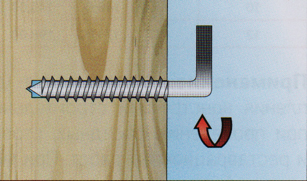 Ce type de vis autotaraudeuse nécessite de pré-percer un trou dans le meuble. Une clé hexagonale est utilisée pour le serrer.