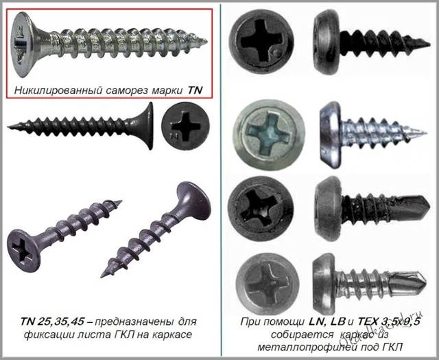 Lorsque vous travaillez avec des cloisons sèches, le type de vis autotaraudeuse est sélectionné en fonction du matériau de la caisse de support. S'il s'agit de bois, on utilise des vis autotaraudeuses avec filetage pour le bois, s'il s'agit de métal, alors des vis universelles.
