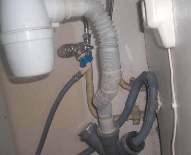 quatre.Nous connectons les tuyaux au lavabo et à la machine à laver. Nous organisons un lavage d'essai pour vérifier l'étanchéité des connexions.