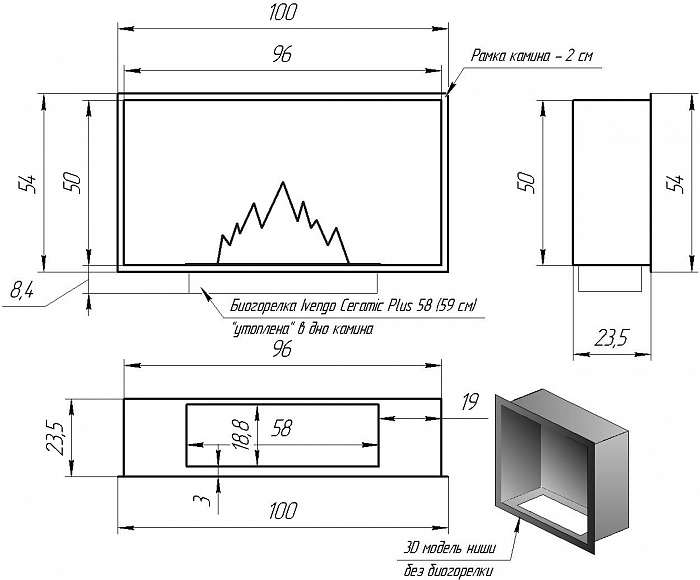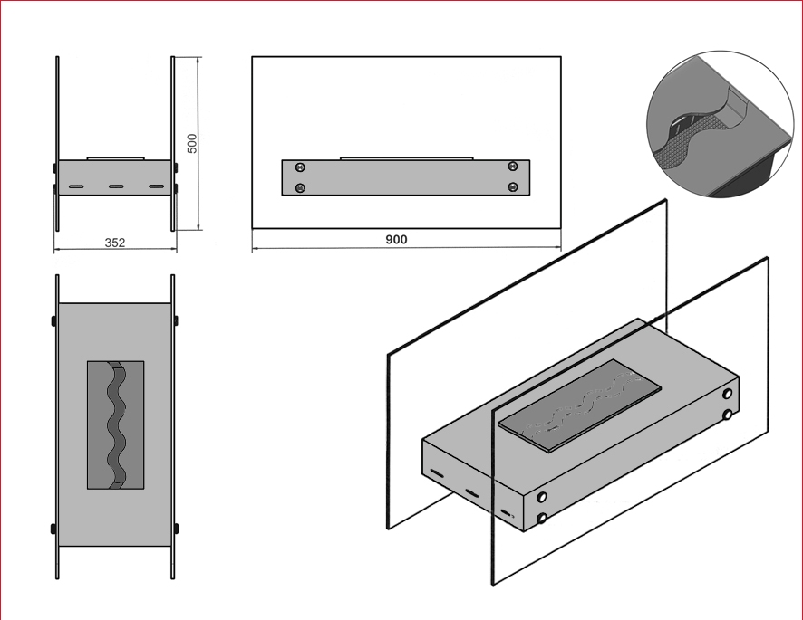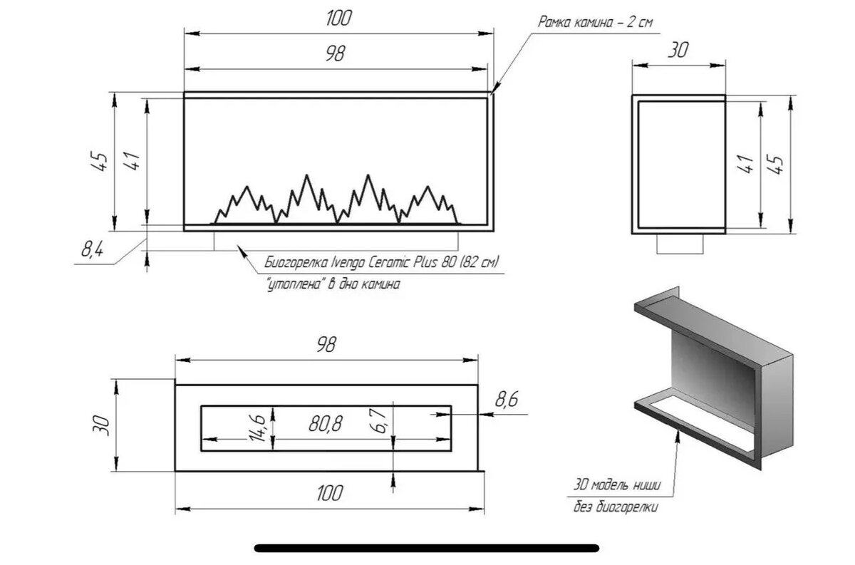 • le cadre est le squelette de la cheminée bio. Toutes les parties fonctionnelles du produit, ainsi que le décor, y sont attachés. Le cadre assure la stabilité de l'emplacement au sol, fixation au mur (pour les modèles muraux). Le décor peut être différent, il complète l'apparence de la cheminée et en fait un détail intérieur lumineux;