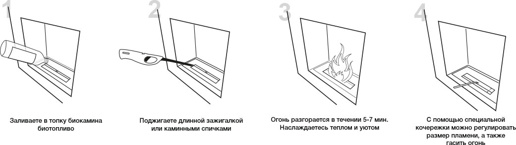 En aucun cas, vous ne devez mettre le feu à une cheminée biologique avec des moyens "improvisés", tels que des copeaux de bois ou du papier roulé, car cela est lourd de brûlures. Il est préférable d'acheter un briquet à gaz avec un long bec, il sera sûr et peu coûteux.