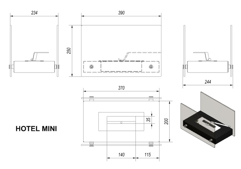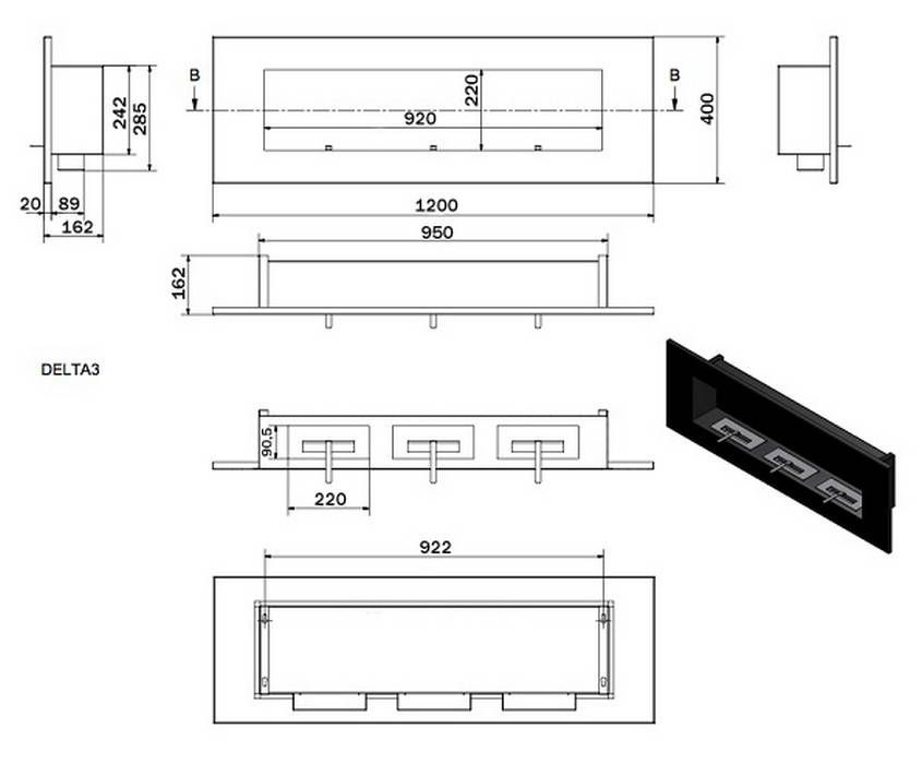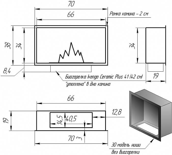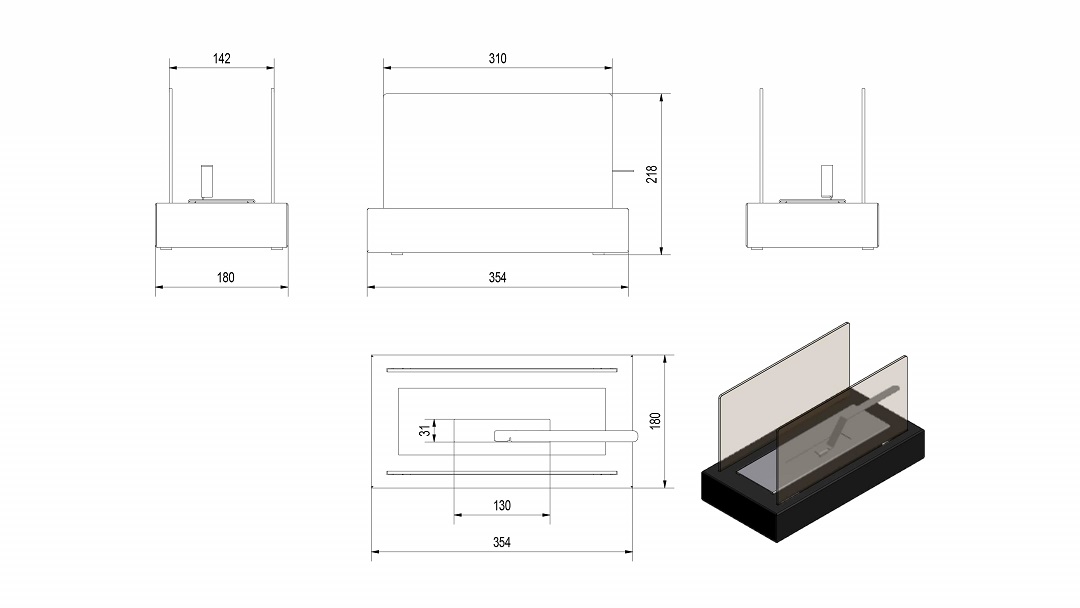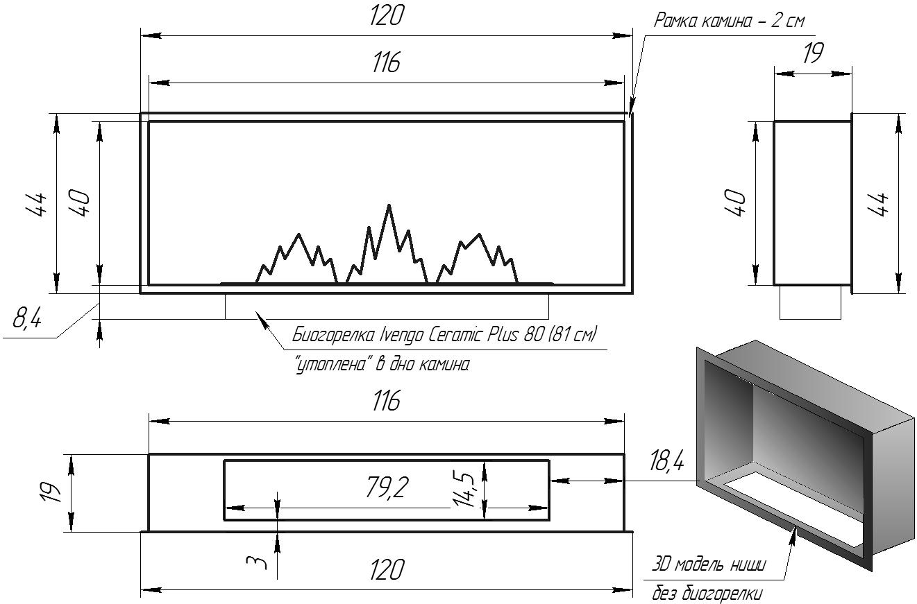 Il est important de faire des calculs corrects, par exemple, la distance entre la source de feu (brûleur) et le verre doit être d'au moins 17 cm (afin que le verre n'éclate pas à cause de la surchauffe). Le nombre de brûleurs est déterminé par la taille de la pièce dans laquelle l'éco-cheminée sera installée.