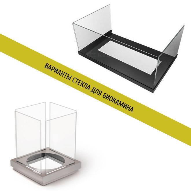 Biofireplace avec deux écrans en verre peut être fabriqué indépendamment. La conception de la base peut être très différente - sous la forme d'une console, d'une table, d'une boîte