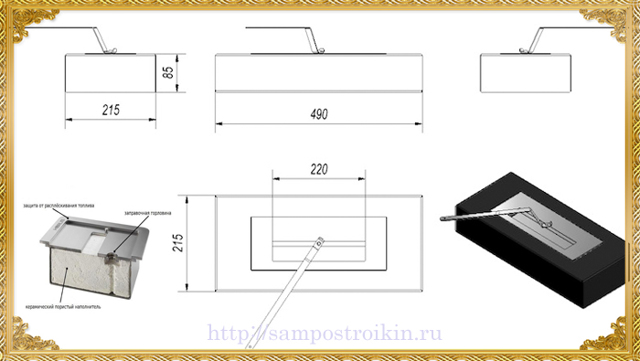 Je veux accorder une attention particulière au "cœur" de toute la structure - le brûleur. Un brûleur pour une bio-cheminée est, en d'autres termes, un récipient pour le combustible