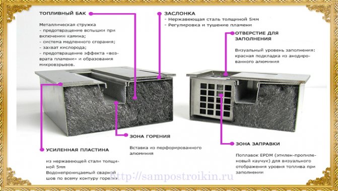 La partie la plus difficile d'une cheminée biologique est ses éléments chauffants - un brûleur ou un réservoir de carburant.