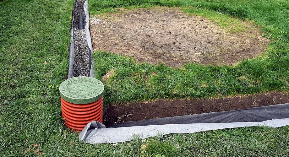 Des tuyaux sont nécessaires pour créer un drainage profond. Pour la ligne principale, des éléments d'un diamètre de 110 mm sont utilisés et des tuyaux d'un diamètre de 60 mm sont optimaux pour les fossés supplémentaires. Le puits est construit à partir d'anneaux en béton ou un récipient en polymère spécial est inséré dans l'évidement. Fraction de pierre concassée 20-40, sable grossier, géotextiles sont également nécessaires pour créer un complexe de drainage.