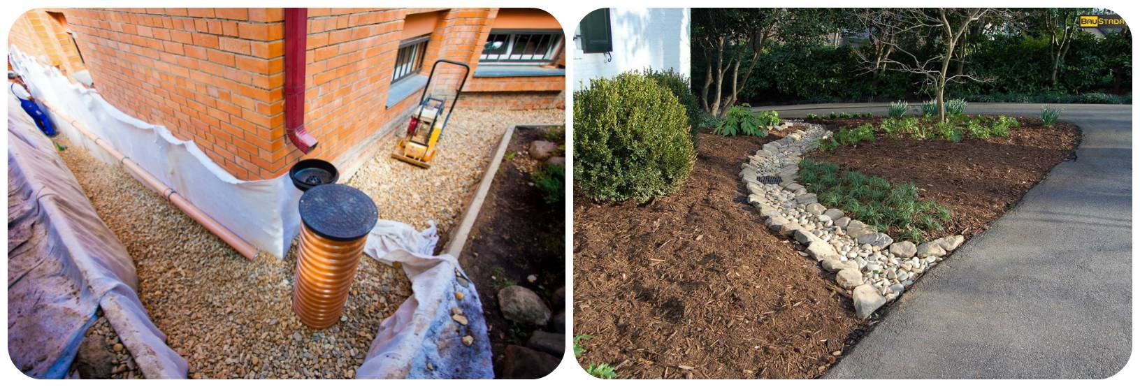 En règle générale, les deux types de construction sont utilisés en combinaison, formant un seul système de drainage dans la zone proche des bâtiments.