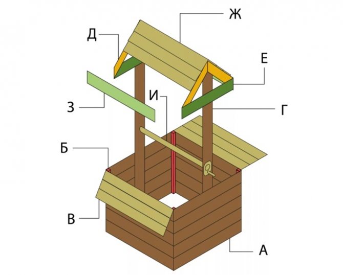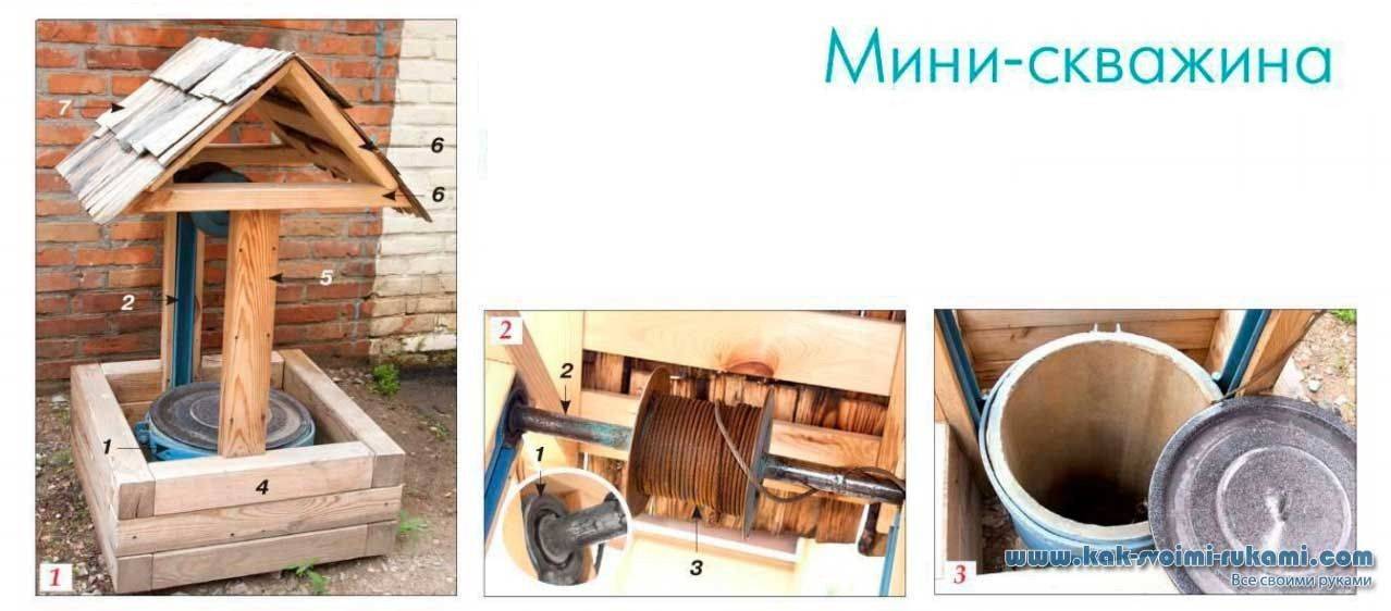 L'accord final de la construction d'un puits pour une résidence d'été est le dispositif d'une maison stylisée au-dessus du puits, dans la conception de laquelle toute l'imagination du ménage sera utilisée.