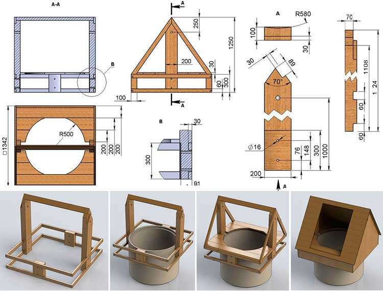 1. Mesurez le diamètre ou la largeur de la tête de puits. Sur la base de ces dimensions, le périmètre de la base en bois de la structure sera calculé.