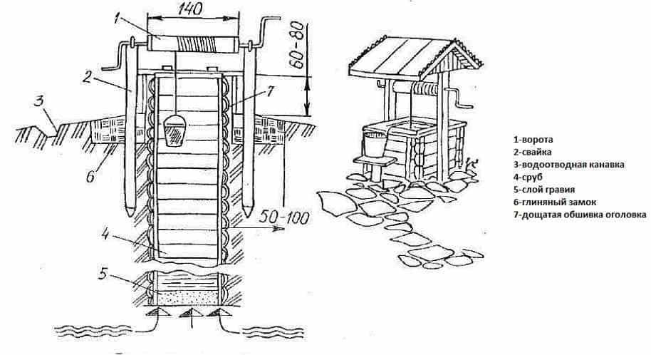 • autour de la maison en rondins ou de l'anneau supérieur en béton du puits, ils creusent une fosse de 180 cm de profondeur;