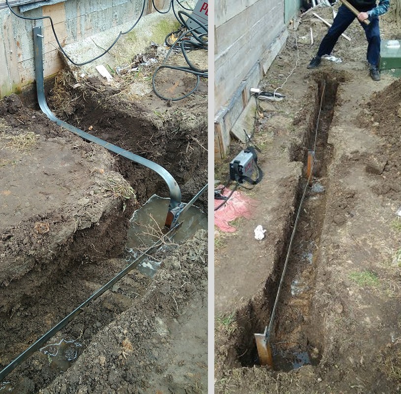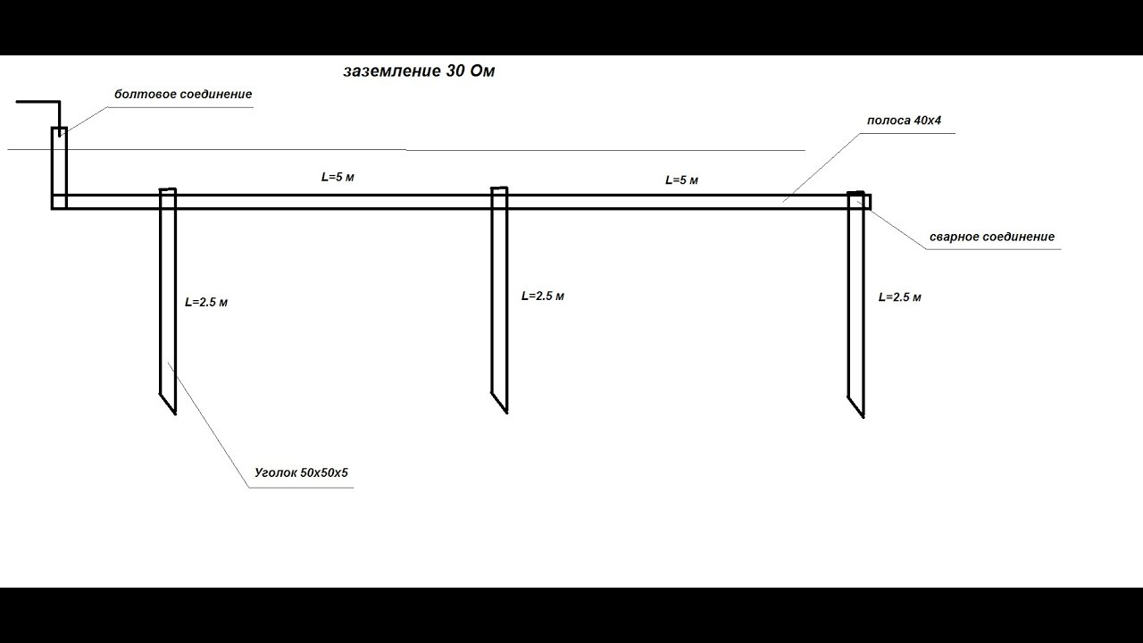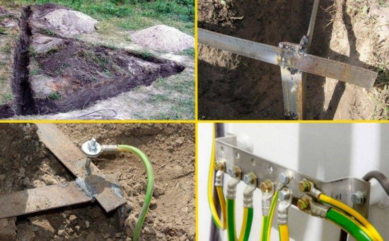 Pour créer une boucle de masse, il est nécessaire d'enfoncer trois broches verticalement dans le sol et de les connecter à des électrodes de masse situées horizontalement. De plus, une barre ou un ruban métallique doit être connecté à partir du conducteur de mise à la terre pour se connecter au panneau électrique. Nous fabriquons des électrodes de terre verticales à partir d'angles en acier 50×50×5 mm, horizontales - à partir de bandes d'acier 40×4 mm.Nous connectons le circuit et le blindage d'entrée avec une barre d'au moins 8 mm2. Vous pouvez utiliser d'autres matériaux, qui sont décrits ci-dessus, mais nous montrerons la fabrication en utilisant ces matériaux à titre d'exemple.